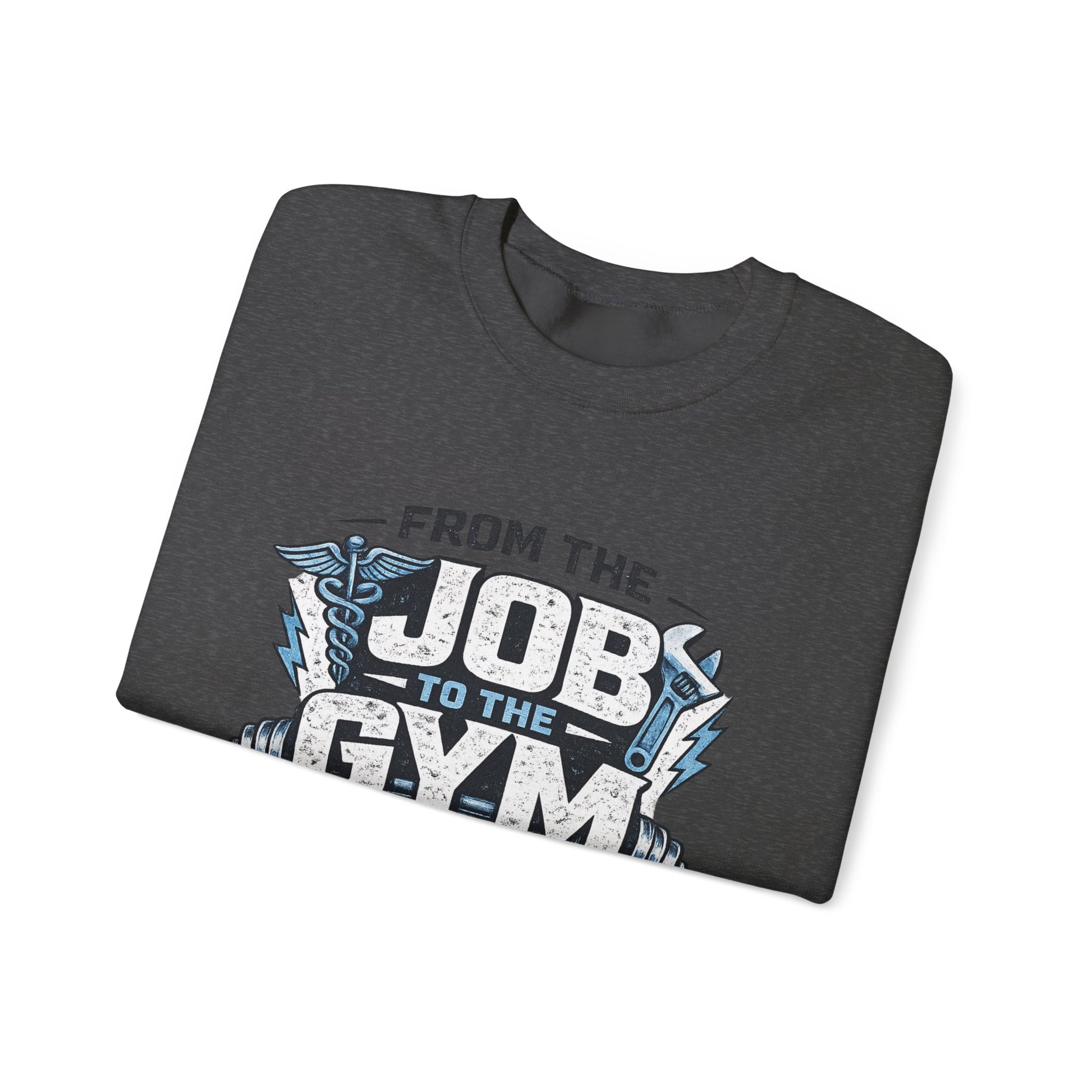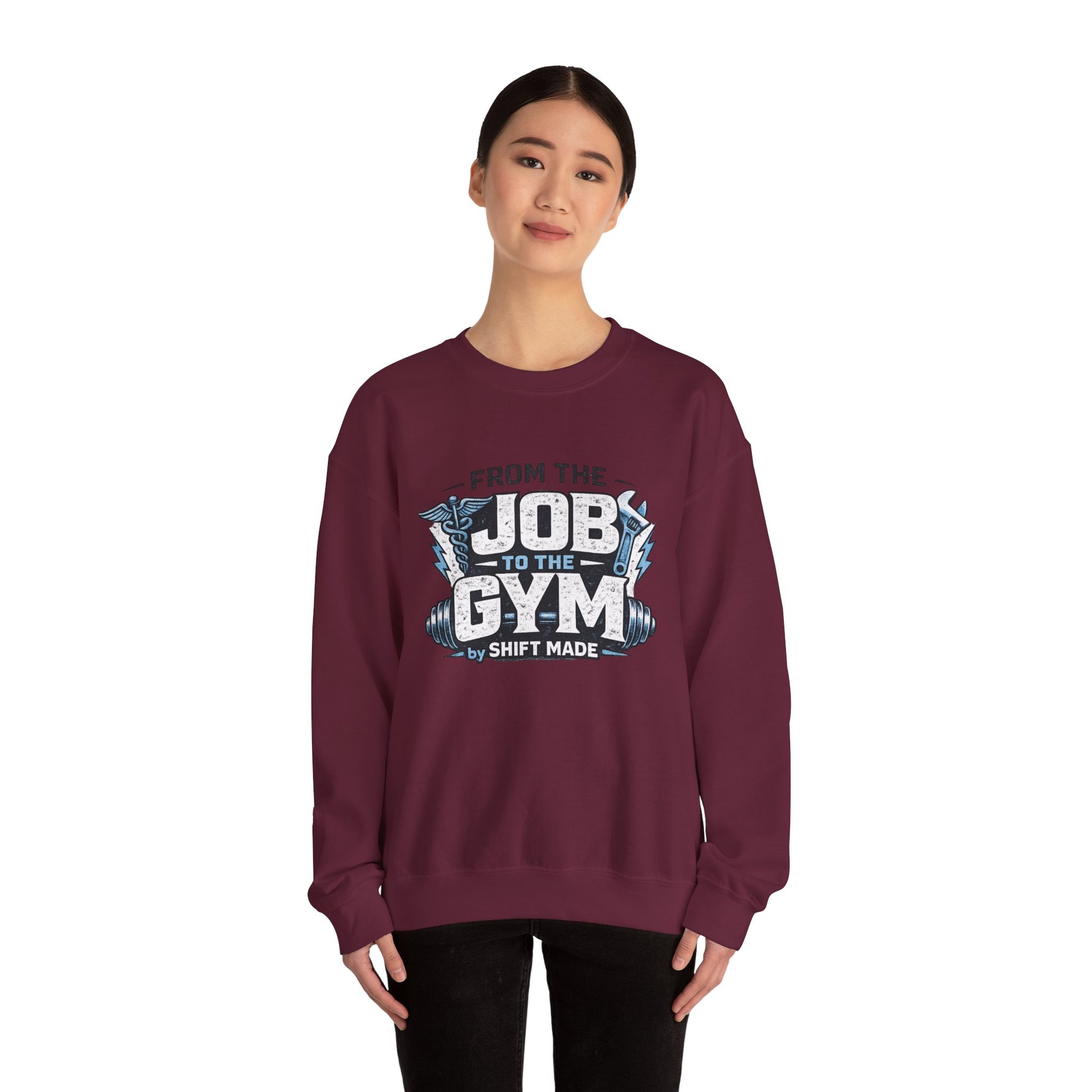 The From the Job to the Gym Sweatshirt by Shift Made™ represents discipline, resilience, and the mindset of those who go straight from long shifts to building their strength.